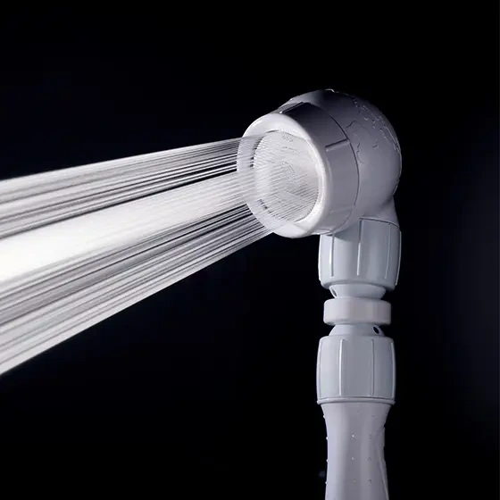 ヘッド部分が上下90°、左右360°回転。散水方向を自由に調節することができ、洗浄したいところへダイレクトに水が届きます。