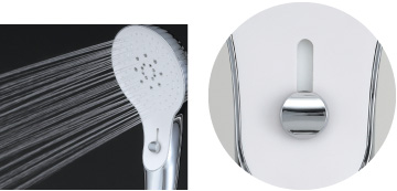一度に多くの部分を洗い流すことができる、大粒のシャワーを採用。快適な水流が全身を包み込みます。